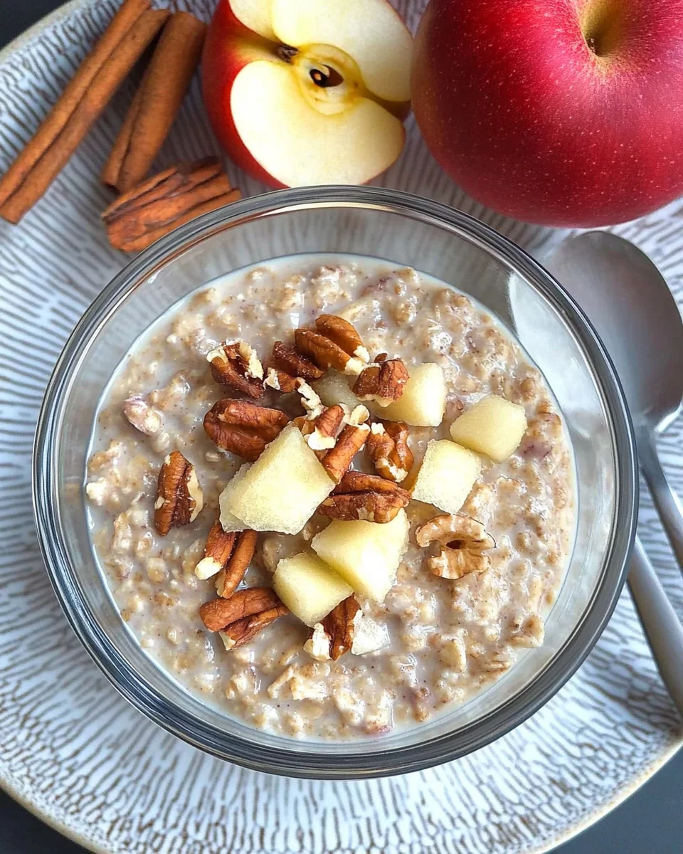 - Apfel-Walnuss Overnight Oats sind eine nahrhafte Frühstücksoption.