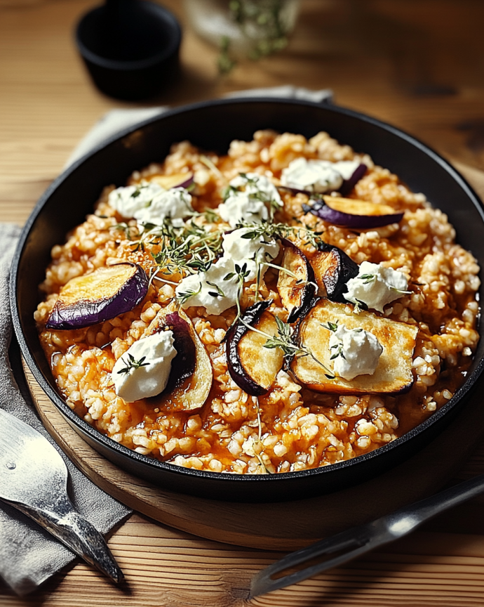 Die Auberginen-Reispfanne mit Feta vereint alles, was die mediterrane Küche so besonders macht: aromatische Gewürze, frisches Gemüse und eine herrlich cremige Käsenote. Dieses Gericht ist nicht nur geschmacklich ein Genuss, sondern auch schnell zubereitet, gesund und unglaublich vielseitig.