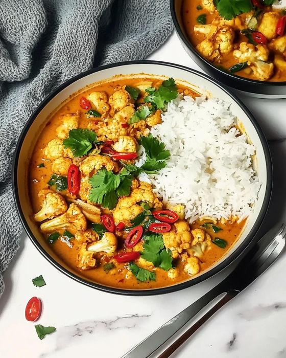 Was folgte, war pure Magie. Der Blumenkohl saugte die cremige Sauce auf, die Kichererbsen gaben dem Gericht eine angenehme Sättigung, und der Hauch von Ingwer und Currypaste brachte genau die richtige Würze. Nach dem ersten Bissen wusste ich: Dieses Rezept bleibt. Seitdem ist es ein fester Bestandteil meines Repertoires, perfekt für gemütliche Abende, Gäste oder einfach als Meal Prep für die Woche.