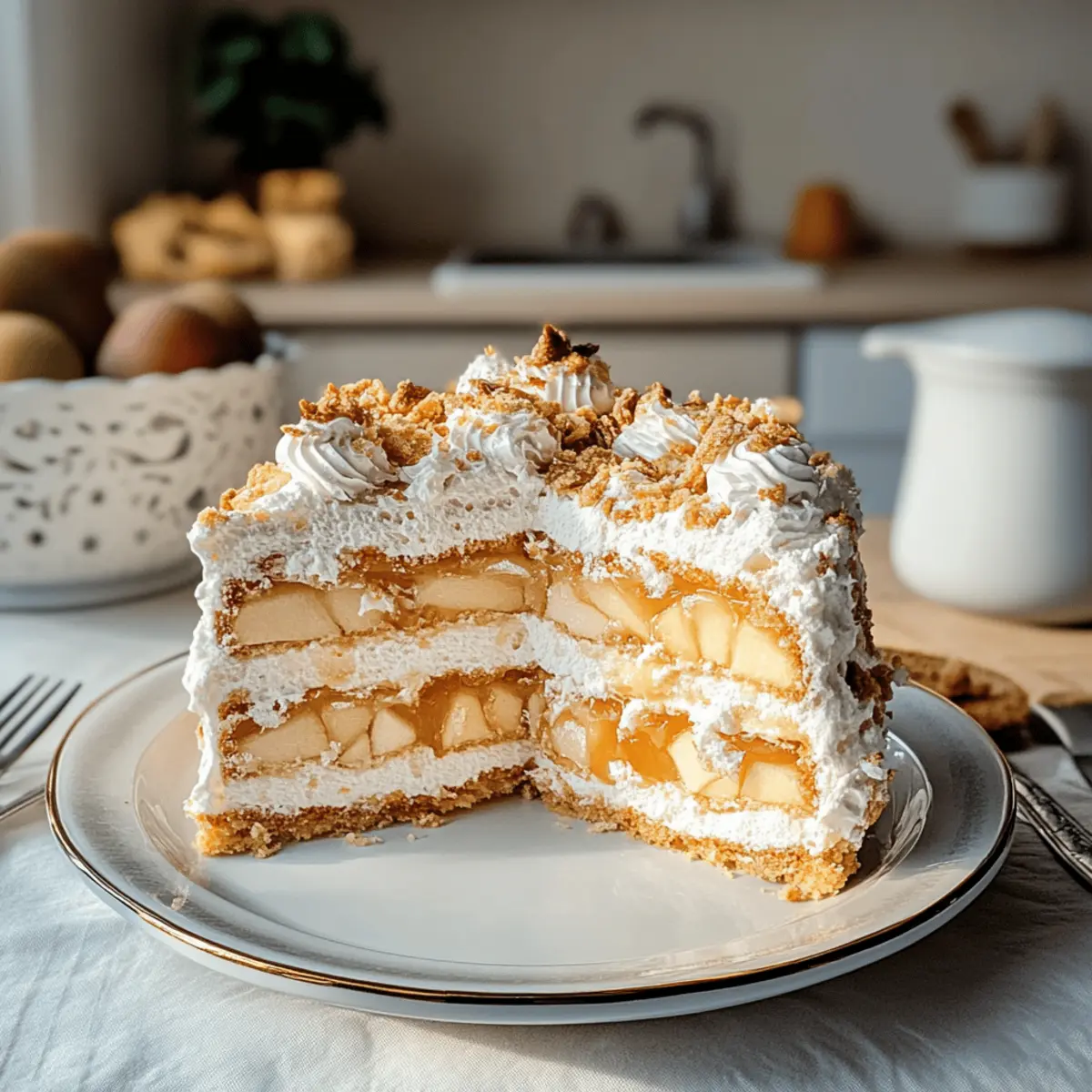 Ein verführerischer Duft von frisch gebackenem Kuchen umweht die Küche, während ich mich auf das große Fest vorbereite. Die Bratapfel Himmelstorte ist nicht nur ein herrlicher Weihnachtskuchen, sondern auch ein wahres Familienrezept, das in meiner Heimat viele Herzen erwärmt. Diese himmlische Torte kombiniert luftigen Biskuit, knusprige Baiser und eine süß-würzige Apfelcompote, die Erinnerungen an gemütliche Feiertage weckt. Die Zubereitung ist kinderleicht und lässt sich prima im Voraus machen – perfekt für die hektischen Festtage! Mit jedem Bissen spürt man die Liebe und die Sinne ganz neu erleben, die dieses traditionelle Festtagsgebäck bietet. Seid ihr bereit, euren Gästen etwas ganz Besonderes zu servieren?