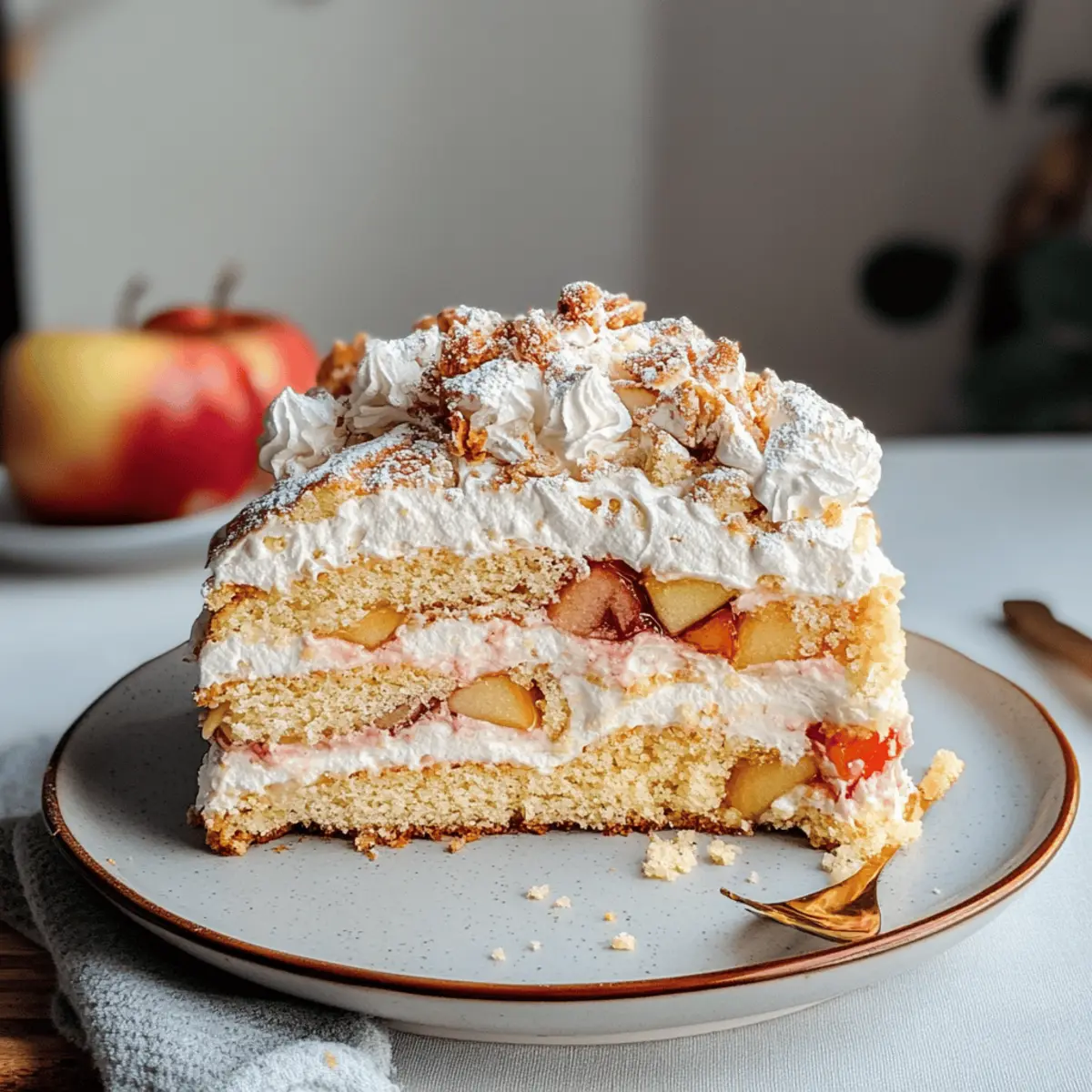 Ein verführerischer Duft von frisch gebackenem Kuchen umweht die Küche, während ich mich auf das große Fest vorbereite. Die Bratapfel Himmelstorte ist nicht nur ein herrlicher Weihnachtskuchen, sondern auch ein wahres Familienrezept, das in meiner Heimat viele Herzen erwärmt. Diese himmlische Torte kombiniert luftigen Biskuit, knusprige Baiser und eine süß-würzige Apfelcompote, die Erinnerungen an gemütliche Feiertage weckt. Die Zubereitung ist kinderleicht und lässt sich prima im Voraus machen – perfekt für die hektischen Festtage! Mit jedem Bissen spürt man die Liebe und die Sinne ganz neu erleben, die dieses traditionelle Festtagsgebäck bietet. Seid ihr bereit, euren Gästen etwas ganz Besonderes zu servieren?