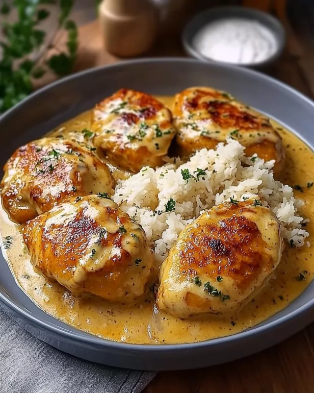 Zwiebel-Sahne-Hähnchen Rezept für ein schnelles Abendessen.