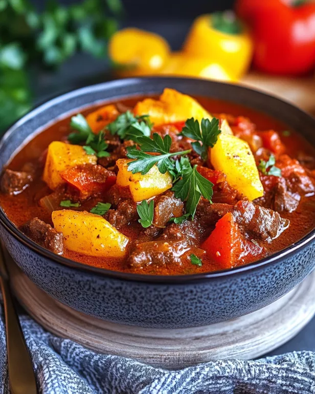 Saftiges Paprikagulasch Rezept für ein herzhaftes Gericht.