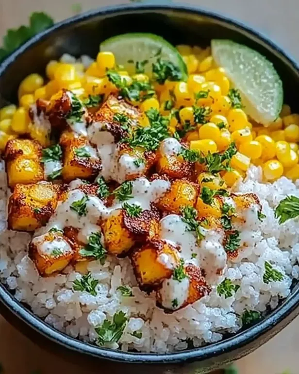 Street Corn Hähnchen-Reis-Bowl Rezept einfach zubereiten!