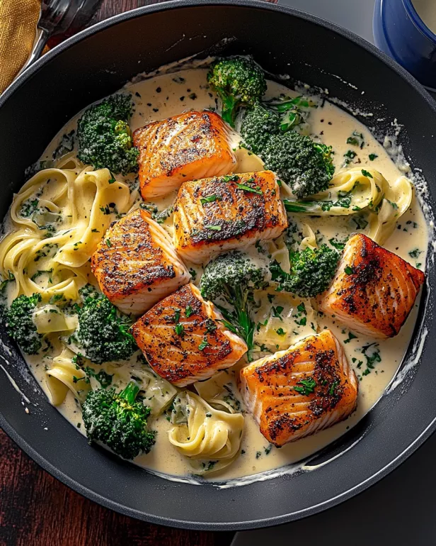 Schwarzer Lachs mit Brokkoli Alfredo einfach zubereiten.