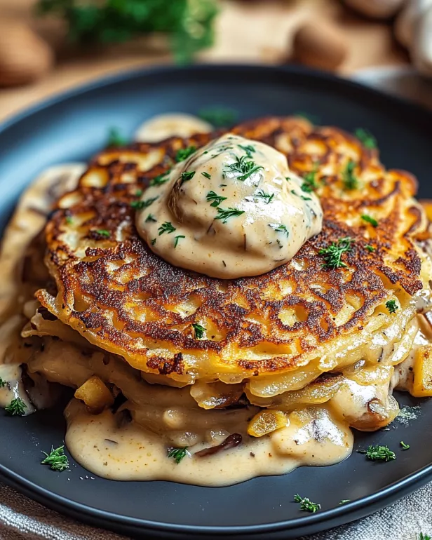 Mozzarella-Rösti mit Zwiebel-Pilzsoße einfach zubereiten.