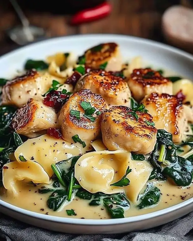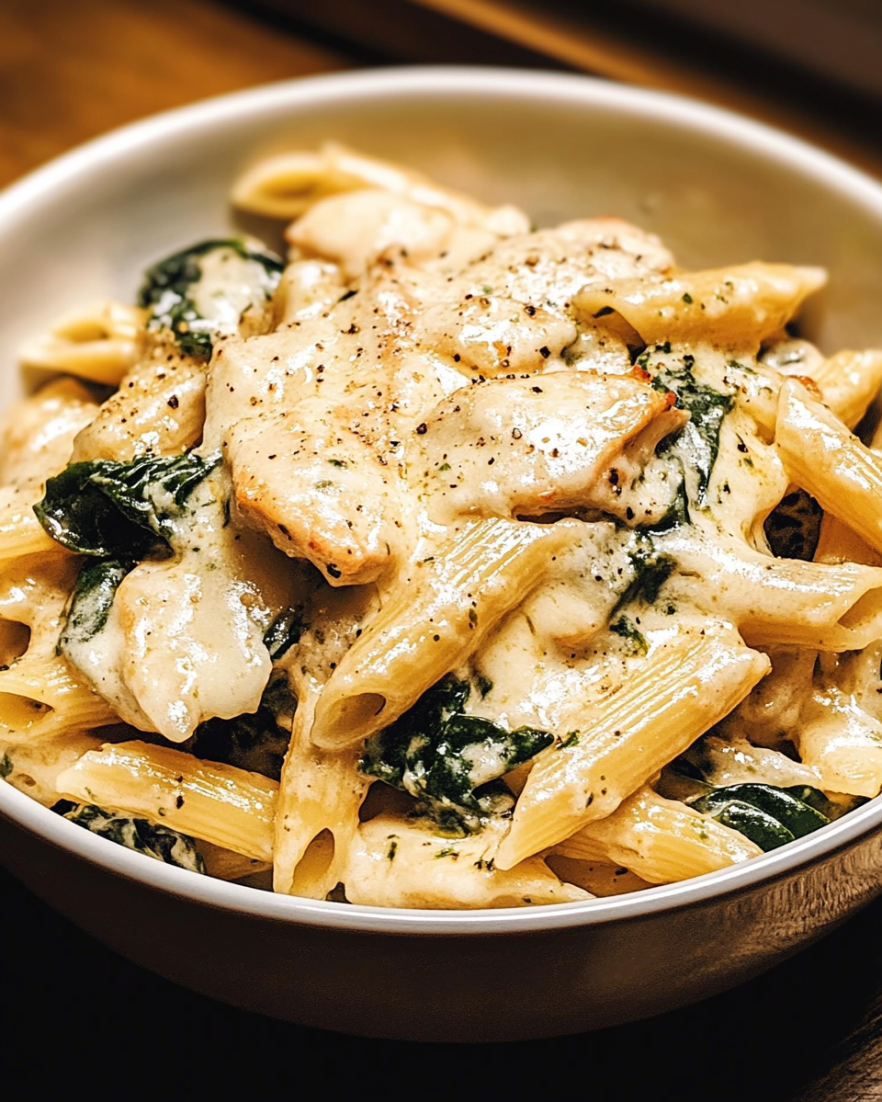 Frischkäse-Spinat-Hähnchen-Pasta Rezept einfach zubereiten!