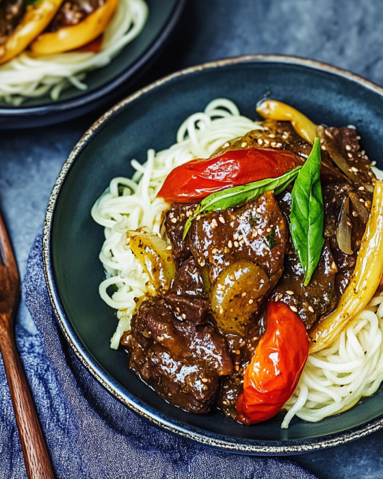 Zucchini-Nudeln mit Pesto und Kirschtomaten Rezept genießen!
