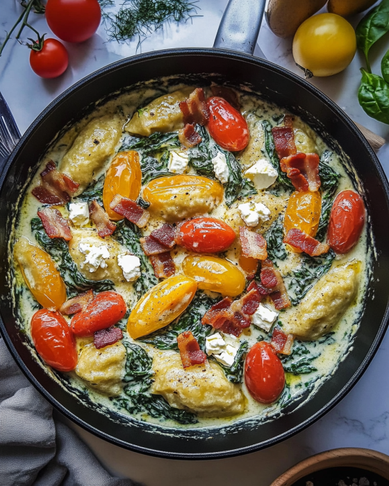 Spinat-Schupfnudeln mit Feta, Tomaten und Speck – Ein herzhaftes Wohlfühlgericht