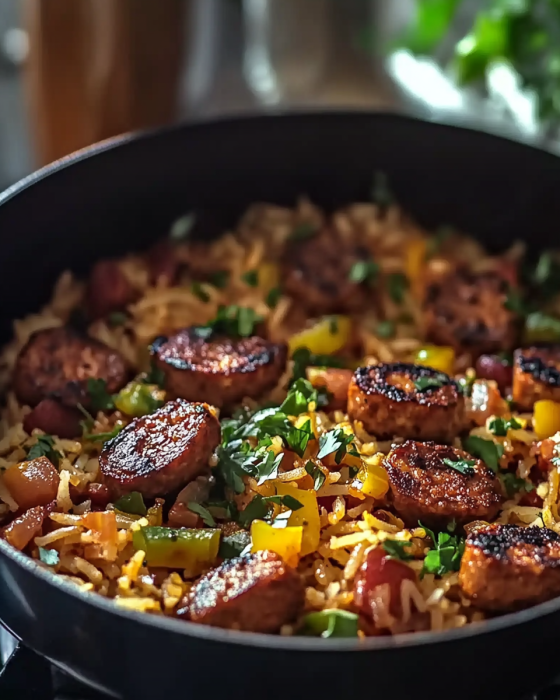 Cajun Wurstpfanne mit Reis – Würziger Genuss aus nur einer Pfanne