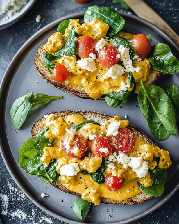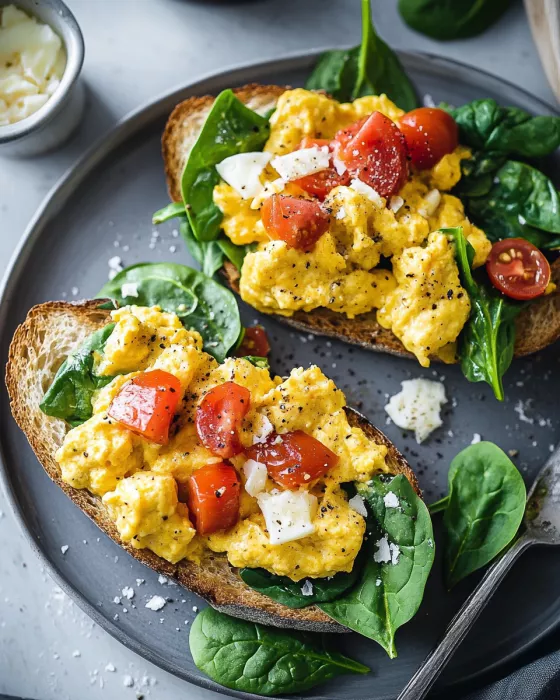 Cremiges Rührei mit Spinat und Tomaten einfach zubereiten.