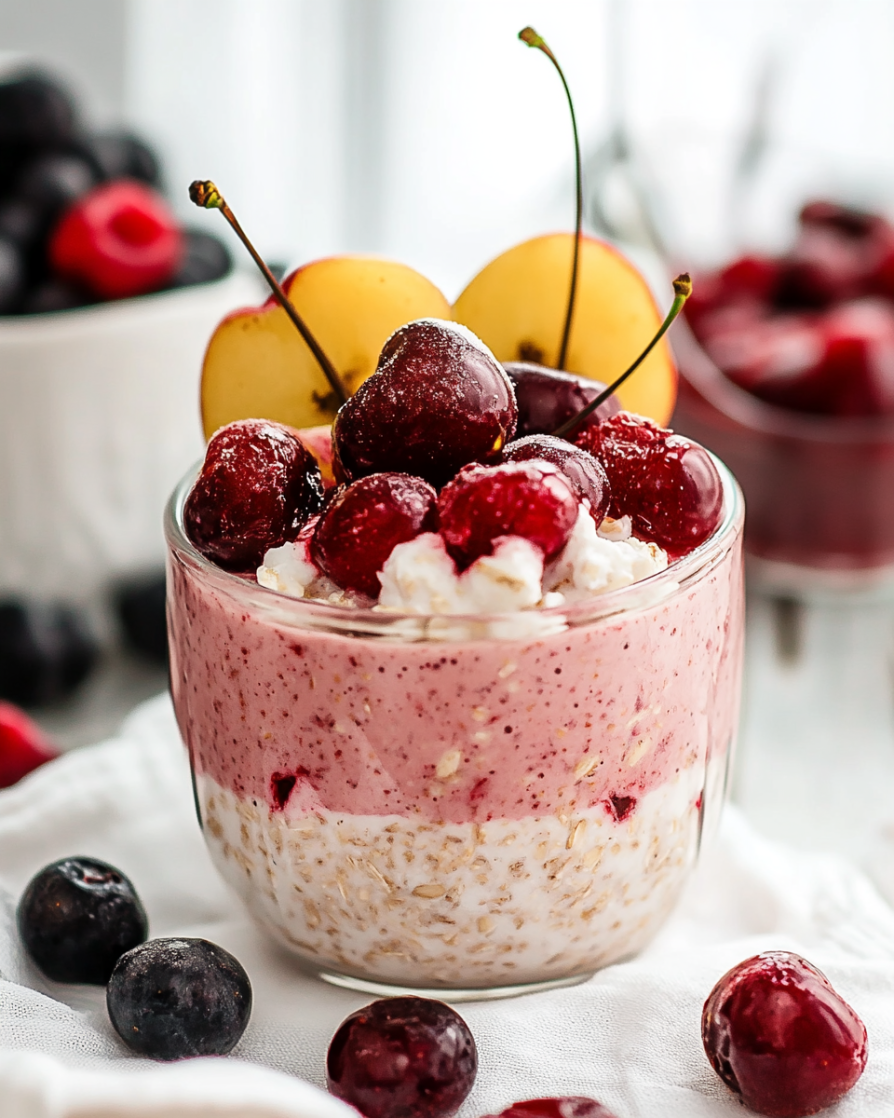 Kirschen Overnight Haferflocken sind ein gesundes Frühstück.