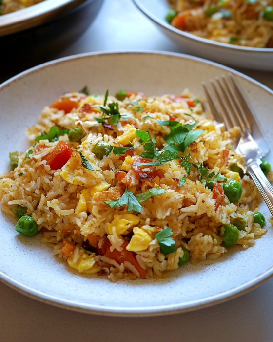 Gebratener Reis mit Ei und Gemüse Rezept einfach zubereiten
