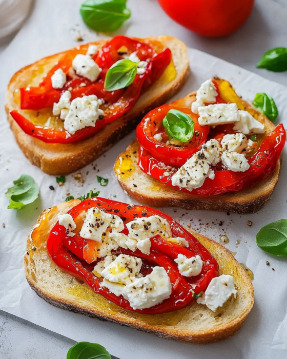 Gerösteter Paprika-Feta-Toast – Mediterraner Genuss auf knusprigem Brot