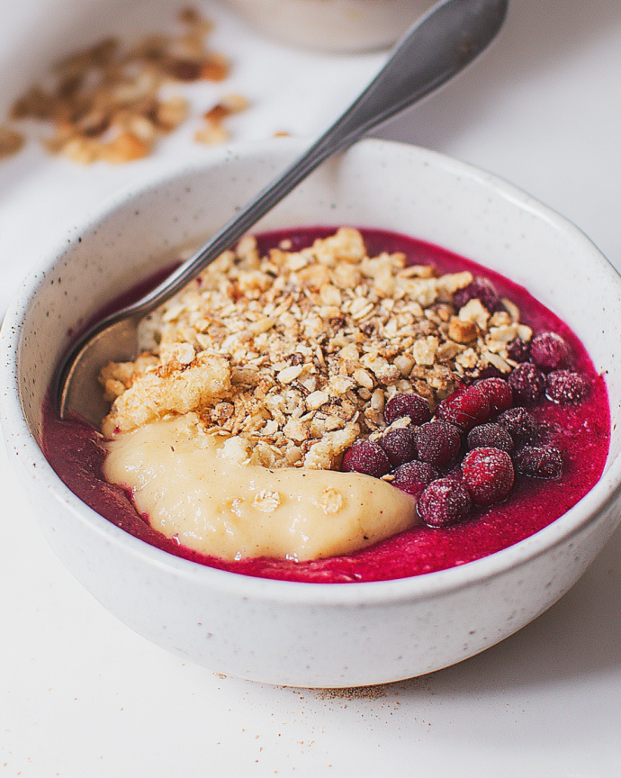 Vegane Grießpudding Bowl mit heißer Himbeersauce: Ein Genuss für Körper und Seele