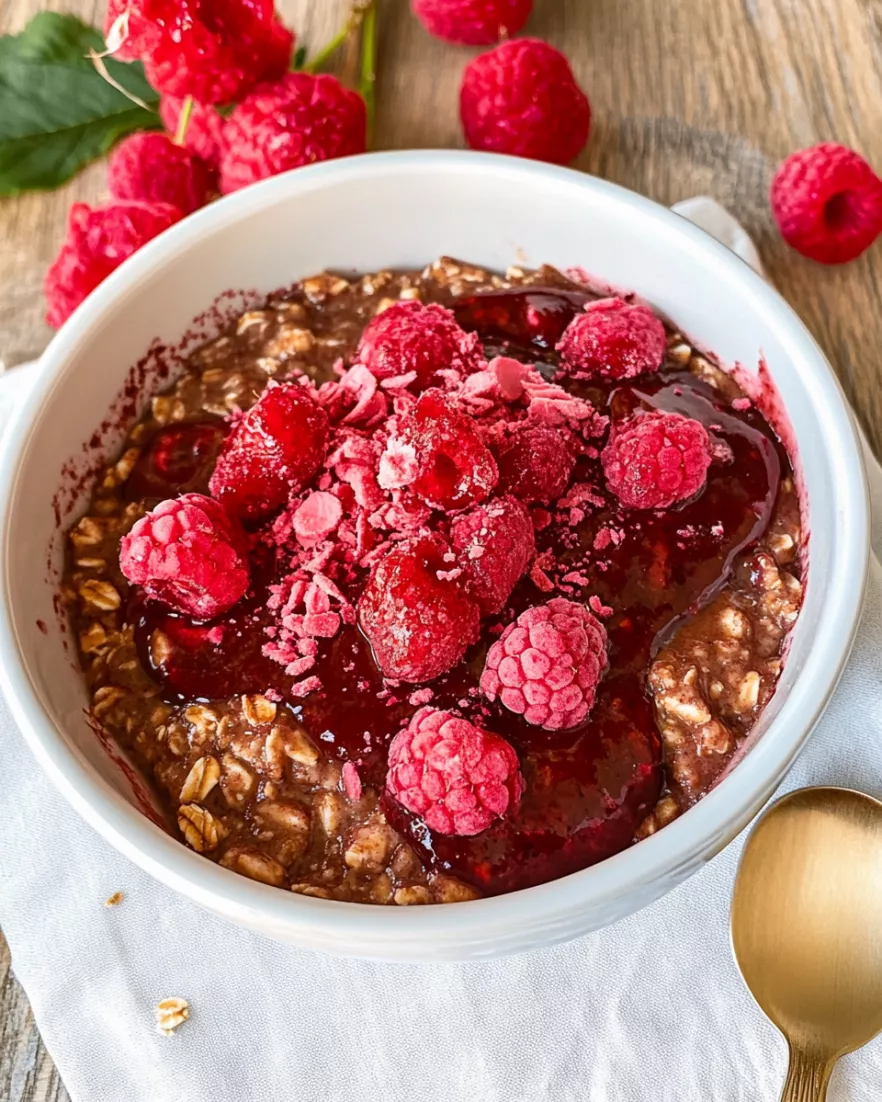 Vegane Baked Oats mit Himbeeren sind einfach köstlich!
