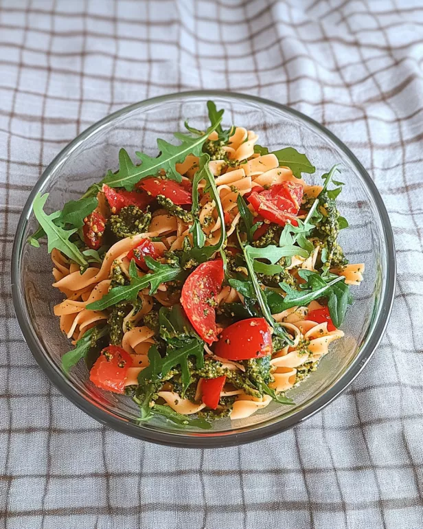 Nudelsalat mit Rucola und Pesto Rezept einfach zubereiten!