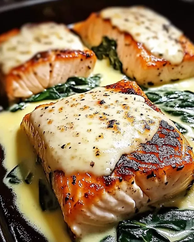 Schwarzer Lachs mit Spinat und Parmesan gefüllt begeistert!