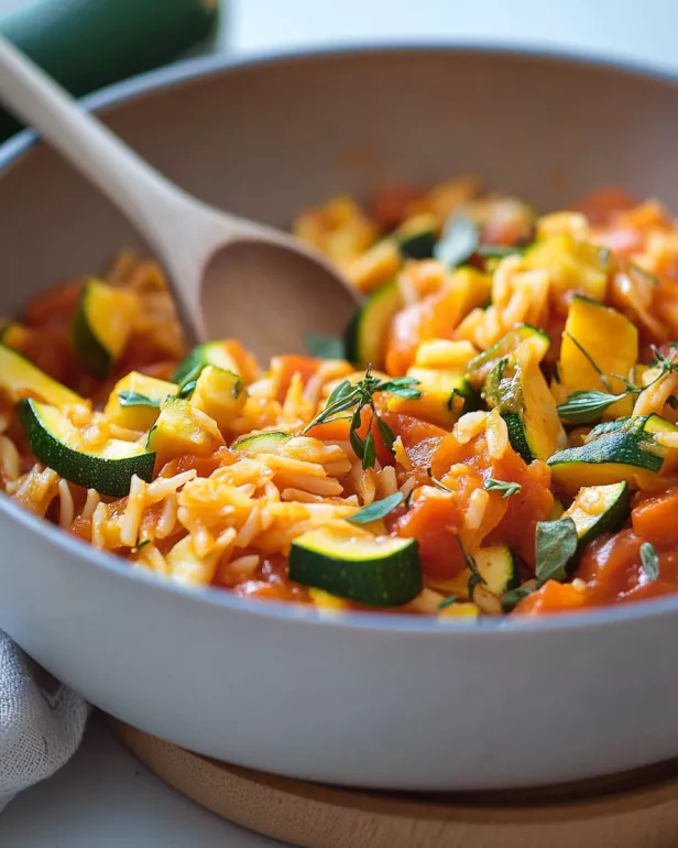Zucchini-Tomaten-Reis Rezept für ein schnelles Abendessen.