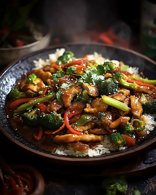 Chinesische Hähnchenpfanne mit Reis einfach zubereiten.
