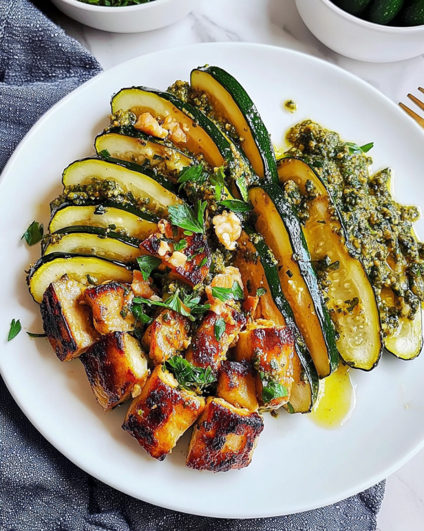 Zucchini-Nudeln mit Pesto und Hähnchen Rezept genießen!