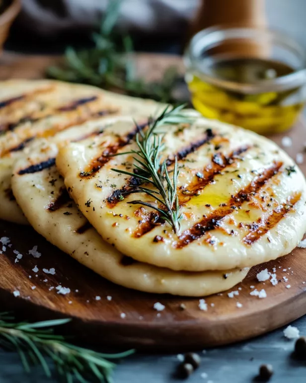 Grillbrot mit Olivenöl und Meersalz einfach zubereiten.