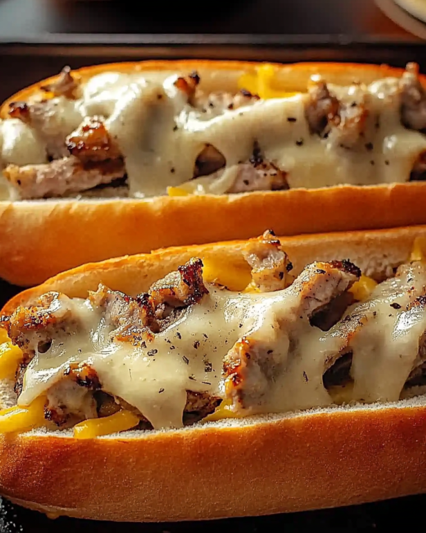 Hähnchen-Cheesesteaks Rezept für ein schnelles Abendessen.