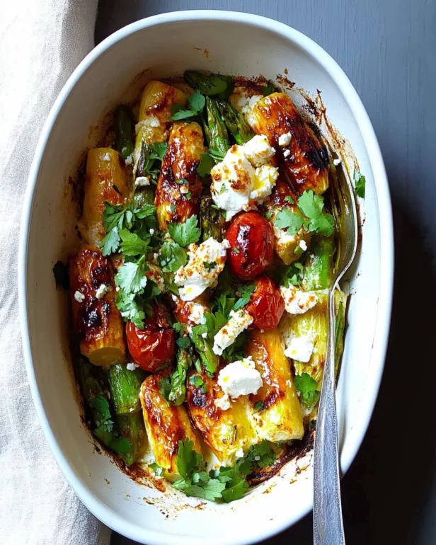 Grüner Spargel im Backofen mit Feta einfach zubereiten.