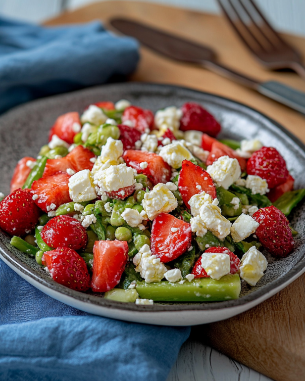 Grüner Spargelsalat mit Erdbeeren und Feta genießen!