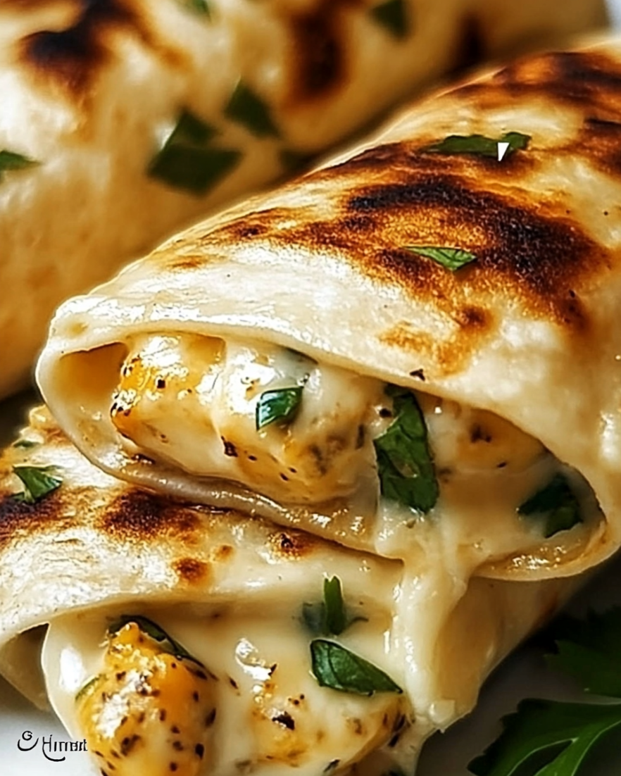Hähnchen-Wraps mit Käse und Knoblauch Rezept genießen!