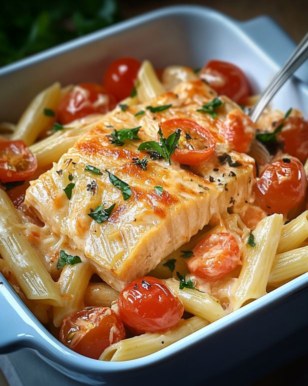 Ofen-Lachs-Pasta mit Tomaten: Ein einfaches Rezept!