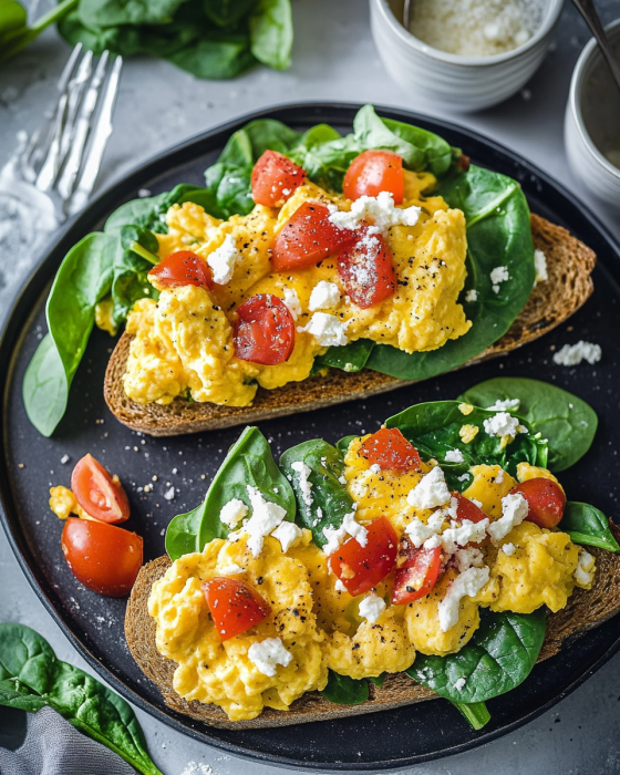 Variationen des Cremiges Rührei mit Spinat und Tomaten Rezept