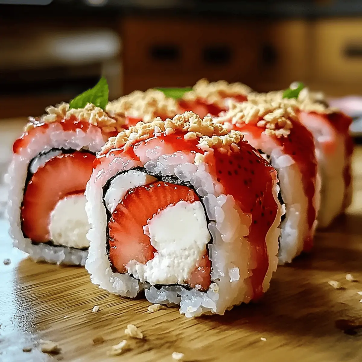 Hast du schon mal von einem Dessert gehört, das die Leichtigkeit von Erdbeerkuchen mit der verspielten Form von Sushi kombiniert? Genau das erwartet dich mit unserem Erdbeerkuchen Sushi Rolle Dessert Rezept! Diese zauberhaften, ohne Backen zubereiteten Sushi-Rollen vereinen die cremige Füllung aus Frischkäse, zartem Biskuitkuchen und saftigen Erdbeeren zu einem Fest für die Sinne. Die Vorbereitungszeit ist schnell und einfach, sodass du sie beim nächsten Familienfest oder Mädelsabend mit Leichtigkeit zaubern kannst. Und das Beste daran? Sie sind nicht nur ein Blickfang, sondern auch ein gesundes, leichtes Dessert, das sowohl Erwachsene als auch Kinder begeistert. Bereit für eine süße Überraschung, die deine Gäste ins Staunen versetzen wird? Lass uns gleich mit dem Rezept loslegen!