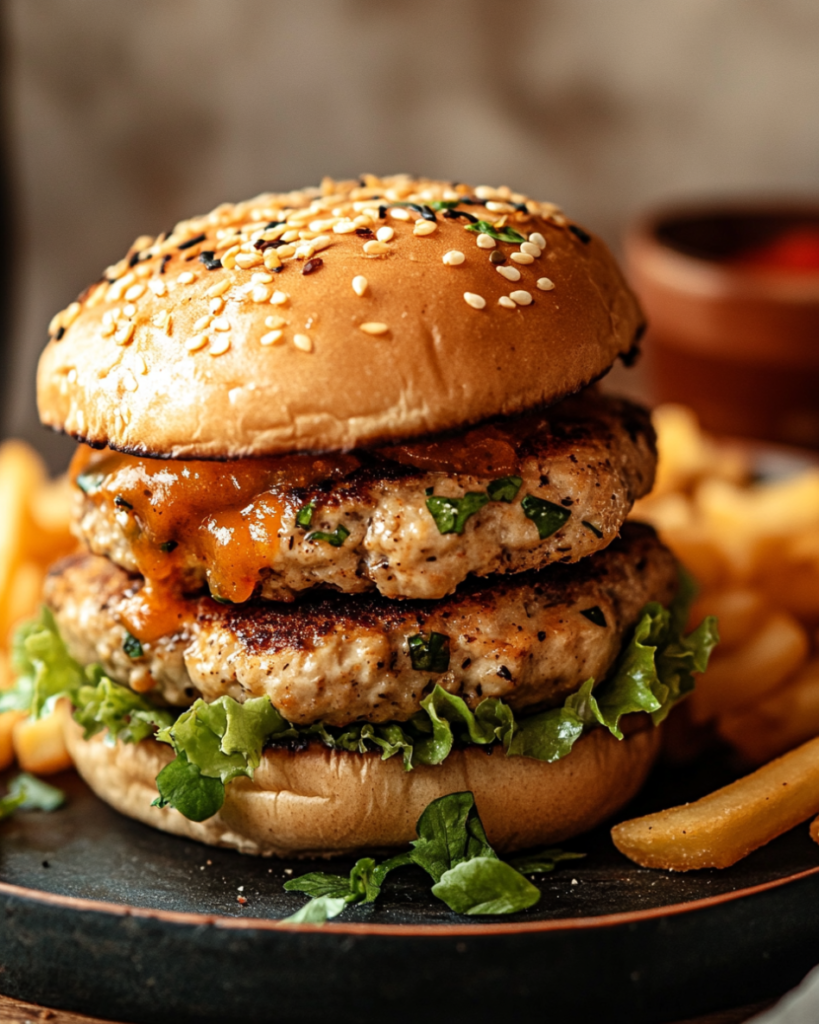 Für saftige Patties empfiehlt sich 93 % mageres Putenhackfleisch. Zu mageres Fleisch kann trocken werden, während ein höherer Fettanteil die Patties schwer macht.