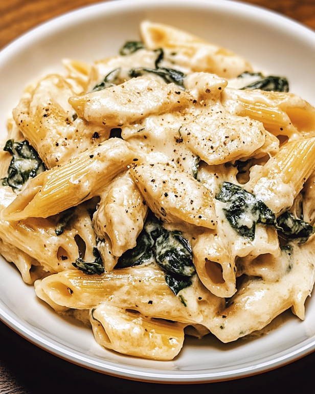 Einführung in das Frischkäse-Spinat-Hähnchen-Pasta Rezept