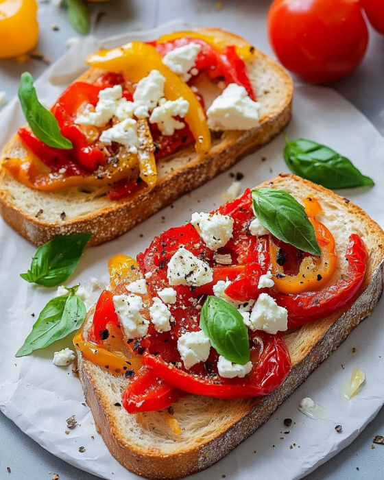 Geröstete Paprika entfalten ein wunderbar süßliches Aroma, das perfekt mit der salzigen Cremigkeit des Feta harmoniert. Das Zusammenspiel dieser Aromen macht diesen Toast so besonders.