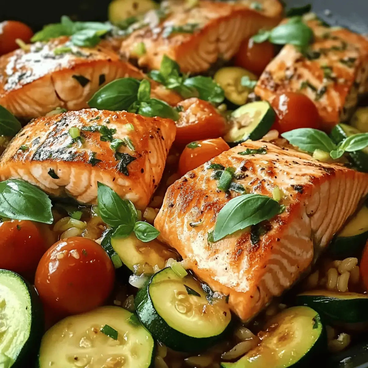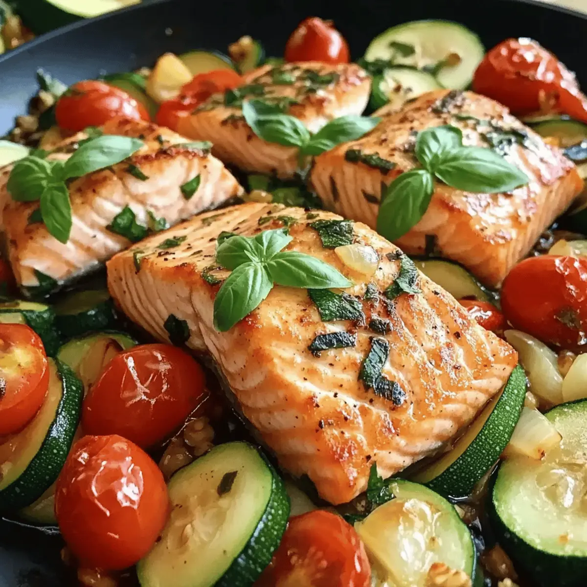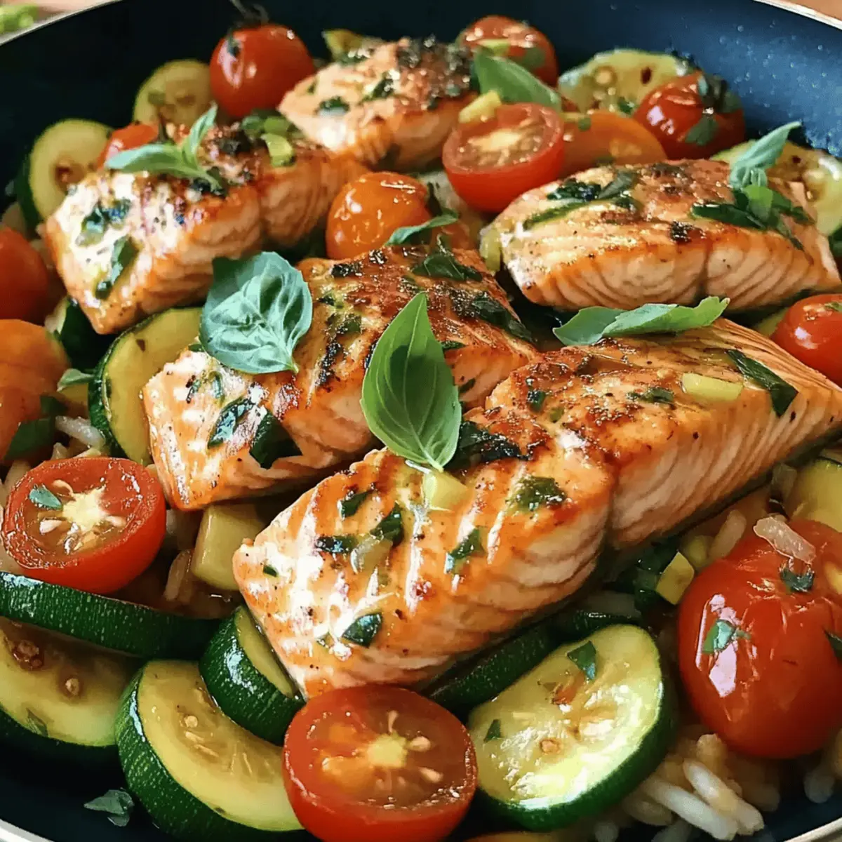 Ein frischer Hauch von Mittelmeer-Küche weht durch meine Küche, als ich den Ofen vorheize und die Farben dieser köstlichen Gesunden Lachspfanne mit Zucchini und Tomaten bewundere. Diese bunte Komposition aus zartem Lachs, knackigem Gemüse und aromatischen Kräutern bringt nicht nur die Sonne auf den Teller, sondern bietet auch eine gesunde, eiweißreiche Mahlzeit in nur wenigen Minuten. Perfekt für ein schnelles Abendessen unter der Woche – sogar die geschäftigsten Tage können köstlich abschließen! Aber nicht nur das, sie ist auch ein Genuss für die Augen, denn die leuchtenden Farben und die frischen Aromen sorgen dafür, dass jeder Bissen mit Lebensfreude gefüllt ist. Wer hätte gedacht, dass gesundes Essen so ansprechend sein kann? Lass uns gemeinsam diese einfache, aber beeindruckende Rezeptidee entdecken!