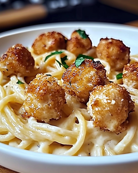 Die Kombination aus cremiger Pasta und knusprigem Hähnchen ist ein Hit bei Kindern und Erwachsenen gleichermaßen. Egal, ob für ein Familienessen oder ein Dinner mit Freunden – dieses Gericht begeistert jeden.
