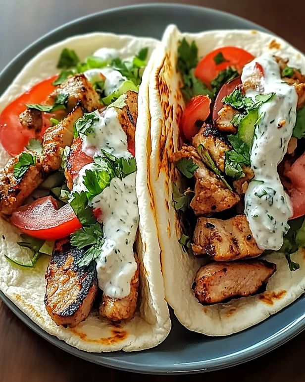 Servieren Sie das Griechische Hähnchen Gyros sofort und genießen Sie den köstlichen Geschmack Griechenlands!