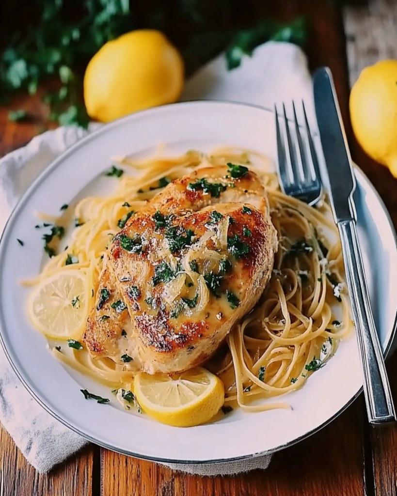 Dank der eleganten Zitronen-Butter-Sauce und der knusprigen Panade macht dieses Gericht optisch einiges her. Ideal für ein romantisches Dinner oder ein festliches Essen mit Freunden.