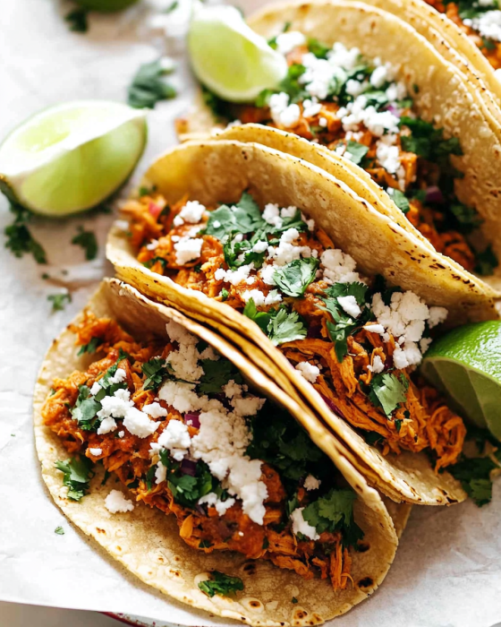 Hähnchen Tinga Tacos sind ein köstliches mexikanisches Gericht, das aus zartem, gewürztem Hähnchenfleisch und einer aromatischen Soße besteht. Diese Tacos sind nicht nur einfach zuzubereiten, sondern auch unglaublich schmackhaft. Die Kombination aus saftigem Hähnchen, frischen Zutaten und würzigen Aromen macht sie zu einem beliebten Snack oder Hauptgericht. Serviert in weichen Tortillas, sind sie perfekt für jede Gelegenheit, sei es ein Familienessen oder eine Feier mit Freunden.