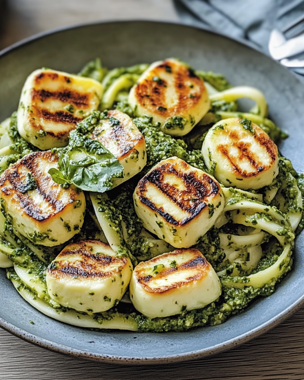 Einführung in Halloumi mit Zucchini-Pesto-Nudeln