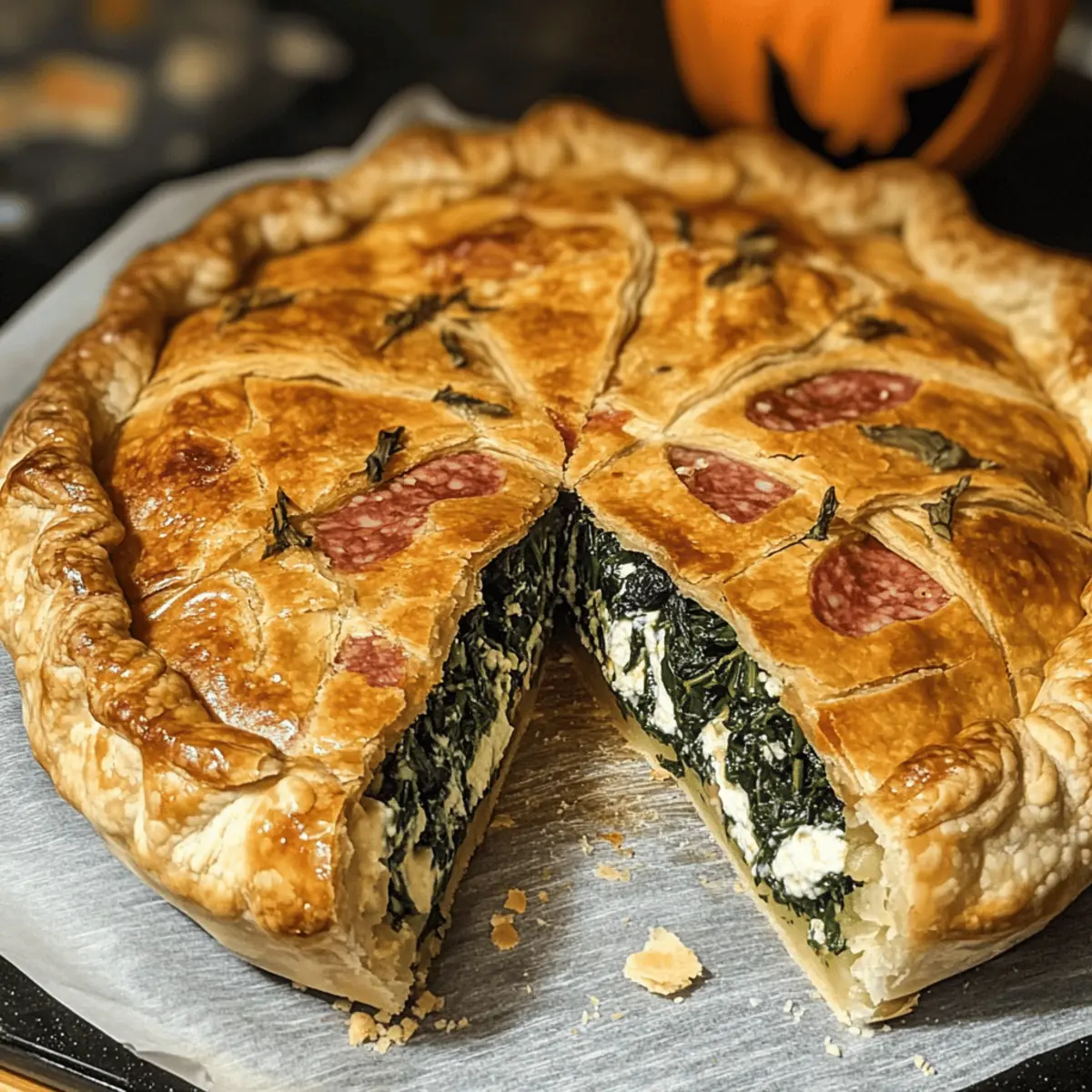 In der belebten Vorweihnachtszeit erscheint ein verführerischer Duft aus meiner Küche, der alle Sinne anregt. Es ist Zeit für meine köstliche Halloween-Fladen mit Ricotta, Spinat und Mortadella! Diese herzhafte Torta Salata vereint frische, gesunde Zutaten und cremigen Genuss in einer knusprigen Blätterteighülle. Ob für eine gesellige Familie oder eine gespenstische Halloween-Party – dieses einfache Rezept wird nicht nur Ihren Gaumen erfreuen, sondern auch Kinder und Erwachsene gleichermaßen begeistern. Mit minimalem Aufwand erzielen Sie ein schmackhaftes Gericht, das sich perfekt für alle Halloween-Feierlichkeiten eignet. Wer möchte nicht ein Stück dieser genussvollen Überraschung probieren, das wie ein kulinarisches Kunstwerk aussieht? Lassen Sie uns gemeinsam in die herzhafte Welt dieser köstlichen Torte eintauchen!