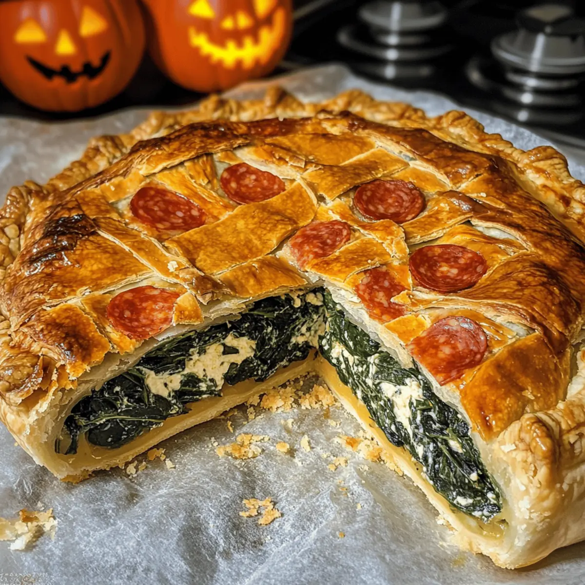 In der belebten Vorweihnachtszeit erscheint ein verführerischer Duft aus meiner Küche, der alle Sinne anregt. Es ist Zeit für meine köstliche Halloween-Fladen mit Ricotta, Spinat und Mortadella! Diese herzhafte Torta Salata vereint frische, gesunde Zutaten und cremigen Genuss in einer knusprigen Blätterteighülle. Ob für eine gesellige Familie oder eine gespenstische Halloween-Party – dieses einfache Rezept wird nicht nur Ihren Gaumen erfreuen, sondern auch Kinder und Erwachsene gleichermaßen begeistern. Mit minimalem Aufwand erzielen Sie ein schmackhaftes Gericht, das sich perfekt für alle Halloween-Feierlichkeiten eignet. Wer möchte nicht ein Stück dieser genussvollen Überraschung probieren, das wie ein kulinarisches Kunstwerk aussieht? Lassen Sie uns gemeinsam in die herzhafte Welt dieser köstlichen Torte eintauchen!