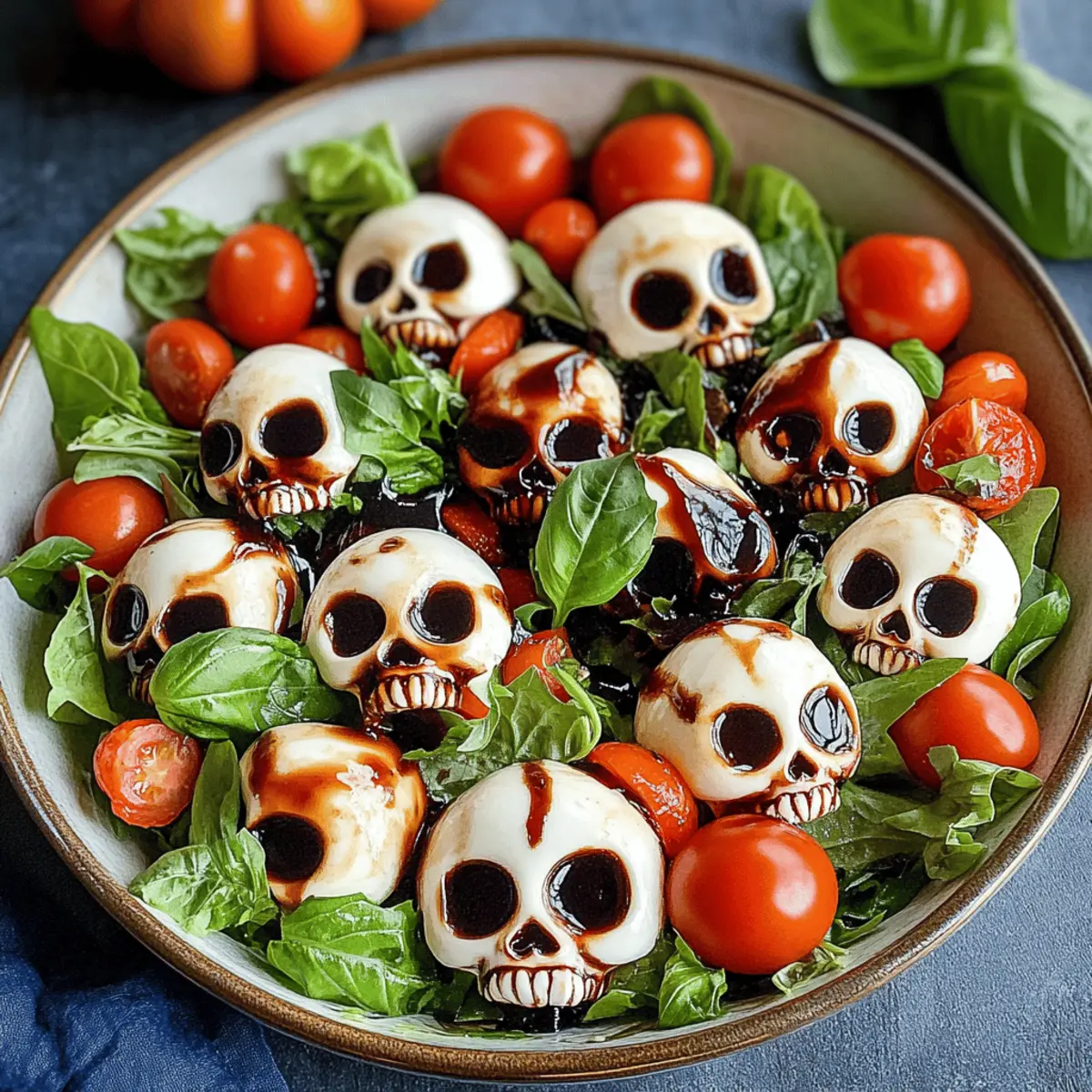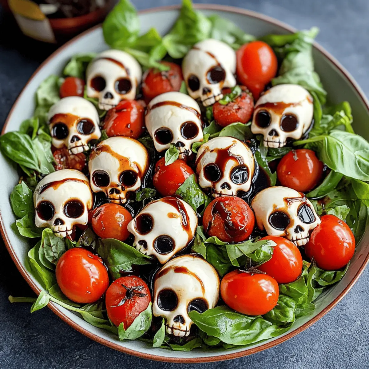 Die ersten Blätter fallen, und die Luft wird kühler—Zeit für Herbstfreuden! Inmitten von Kürbissen und Spinnweben erwecke ich mit meinem Halloween Salat die Aromen der Saison zum Leben. Diese Caprese-inspirierte Kreation kombiniert süße Kirschtomaten, frisches Basilikum und cremige Mozzarella, die als gruselige Totenkopf-Käse einen spaßigen Twist hinzufügen. Dieses leichte Gericht ist nicht nur ein echter Blickfang auf jeder Halloween-Feier, sondern es ist auch gesund und einfach zuzubereiten, perfekt für diejenigen unter uns, die vom Fast Food genug haben. Bereit, Ihre Gäste mit diesem schaurig-schönen Essen zu beeindrucken und gleichzeitig dafür zu sorgen, dass sie wieder nach mehr verlangen? Bleiben Sie dran und entdecken Sie, wie einfach es ist, eine festliche Atmosphäre zu schaffen!