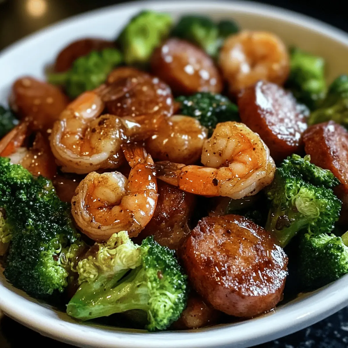 Eines Abends, als der Hunger unbarmherzig klopfte, beschloss ich, die Küche in ein kleines Experimentierlabor zu verwandeln. Heraus kamen die Honig-Knoblauch-Garnelen mit Wurst und Brokkoli – ein schnelles und gesundes Abendessen, das nicht nur den Gaumen erfreut, sondern auch mit wertvollen Nährstoffen aufwartet. Ideal für stressige Wochentage, erfordert dieses Rezept nur wenig Vorbereitung und verwöhnt dich mit einer harmonischen Mischung aus saftigen Garnelen, würziger Wurst und knackigem Brokkoli. Einfach gesagt: Es sorgt für eine Geschmacksexplosion in der Pfanne! Hast du schon einmal solche Kombinationen ausprobiert, die deine Abende zu einem kulinarischen Erlebnis machen?