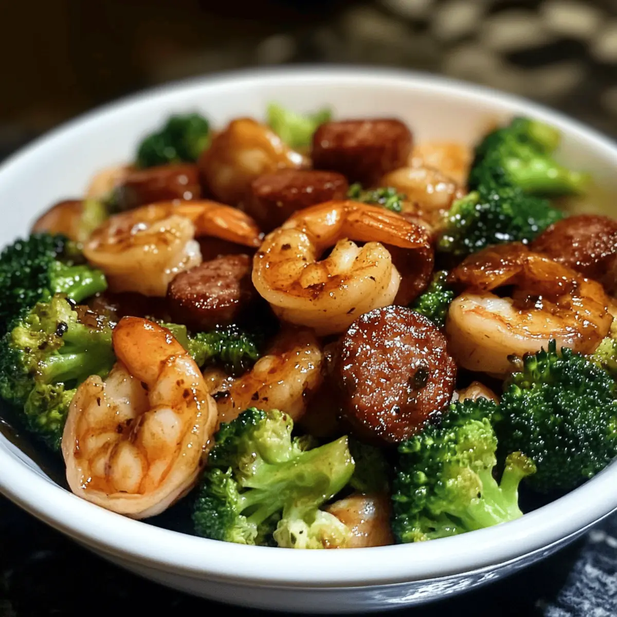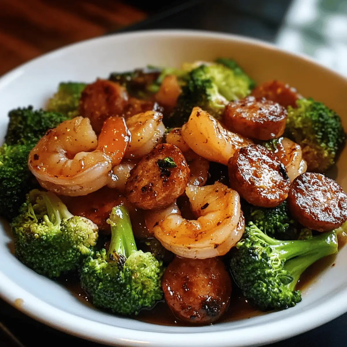 Eines Abends, als der Hunger unbarmherzig klopfte, beschloss ich, die Küche in ein kleines Experimentierlabor zu verwandeln. Heraus kamen die Honig-Knoblauch-Garnelen mit Wurst und Brokkoli – ein schnelles und gesundes Abendessen, das nicht nur den Gaumen erfreut, sondern auch mit wertvollen Nährstoffen aufwartet. Ideal für stressige Wochentage, erfordert dieses Rezept nur wenig Vorbereitung und verwöhnt dich mit einer harmonischen Mischung aus saftigen Garnelen, würziger Wurst und knackigem Brokkoli. Einfach gesagt: Es sorgt für eine Geschmacksexplosion in der Pfanne! Hast du schon einmal solche Kombinationen ausprobiert, die deine Abende zu einem kulinarischen Erlebnis machen?