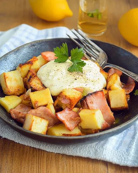 An Sonntagen, wenn die Familie zusammenkam, bereitete sie dieses Gericht aus einfachen Zutaten zu, die sie fast immer im Haus hatte. Es war bodenständig, sättigend und voller Geschmack – genau das, was man nach einem langen Tag brauchte. Während die Kartoffeln langsam in der Pfanne bräunten, erzählte sie Geschichten aus ihrer Kindheit, als dieses Gericht noch als „Restepfanne“ galt, mit dem man alles verwerten konnte, was gerade übrig war.