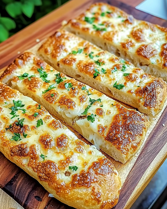 Käse-Knoblauch-Brot kann als Vorspeise, Beilage zu Suppen & Salaten oder als herzhafter Snack für Partys serviert werden.