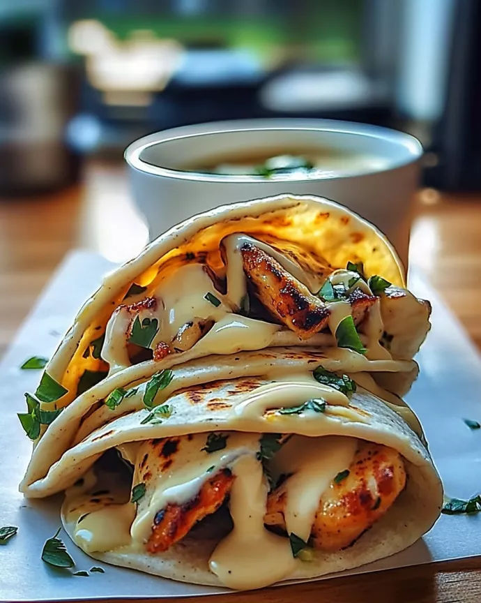 Ich erinnere mich noch genau an die Sonntagnachmittage in meiner Kindheit. Nach einem langen Tag voller Spiele im Freien kam ich hungrig nach Hause, und in der Küche lag der verführerische Duft von Knoblauch, geschmolzenem Käse und frisch angebratenem Hähnchen in der Luft. Meine Mutter hatte eine besondere Art, Wraps zuzubereiten – mit einer goldbraunen, knusprigen Kruste und einer herrlich cremigen, würzigen Füllung. Sobald sie die Wraps aus der Pfanne nahm und in zwei Hälften schnitt, zog sich der Käse in langen, verlockenden Fäden.